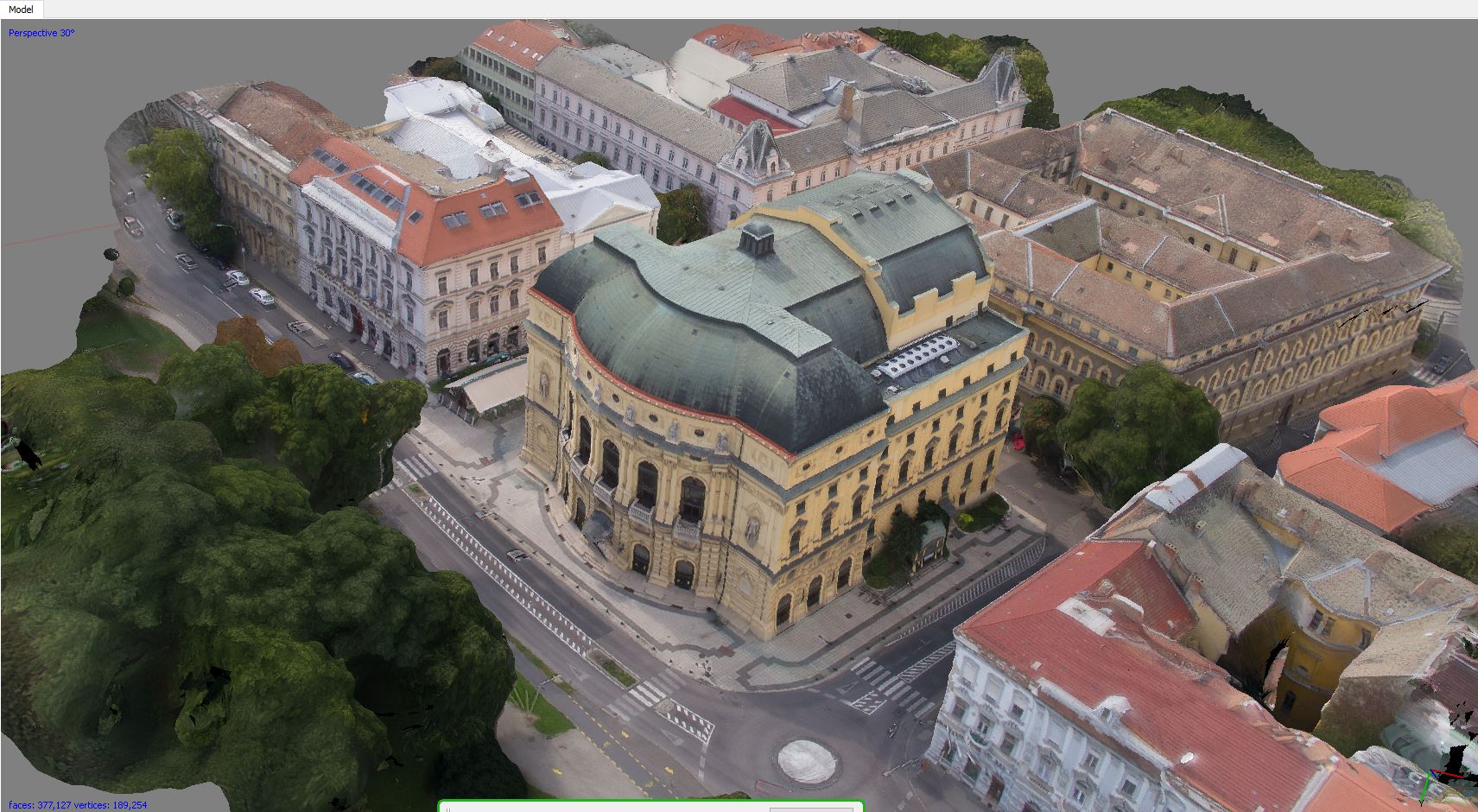 A lenti videón láthatjuk a részletgazdag 3D modelt, aminek a segítségével felgyorsítható egy manuális, 3D test lemodellezése, vagy egy teljes utca bephotoscan-elése, kizárólag állóképek alapján. Sokkal jobb, arányosabb, részletgazdagabb eredményeket kapunk így, mint pl 2-3 munkanapos skiccelésekkel, helyszíni bejárásokkal, esetleg a Google Earth-el.